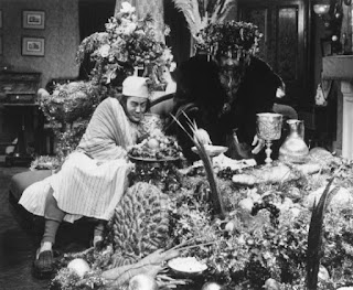 And it would seem that the very one they are thanking at this undisclosed future time, is Scrooge himself! Invisible nightgown Scrooge accepts their gratitude with uncharacteristic humility, never realizing that they’re singing and dancing around his coffin! See, these are all the people who owe Scrooge money, and his death cancels their debts! They’re literally doing the old soft shoe on his coffin! (If you drag the slider to about 1hr/20sec on the video link above, you can see this rollicking number.)